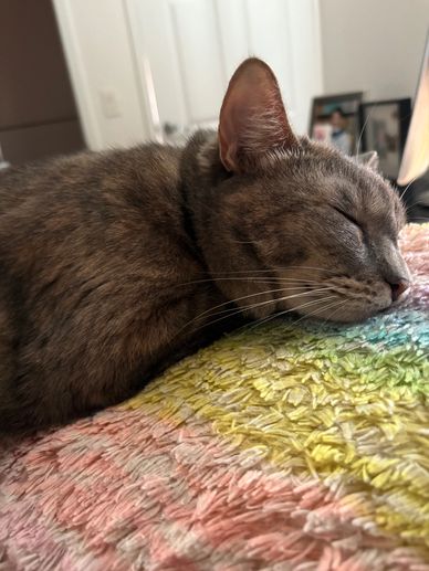 Bella was brought in from the streets of Mount Vernon this lil tiny kitten lost her mom. I contacted Maria the volunteer and asked if she’ll be interested on fostering. she immediately said yes! When spay day came her heart broke she had to bring Bella back . That night she call and said I have to adopt Bella, 4 yrs later Bella is so fat and loves her mom.
