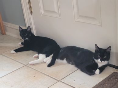 These 2 where brought in as a pair that got trapped at a concentration site. I named them Luna and Daisy one test positive for FIV/FeLV so they couldn't get adopted right away. Once well enough they both got retested and was negative got vaccinated and spayed and off to a happy life together with the perfect dad Tony.
