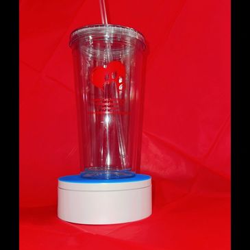 logo tumbler with lid and straw 100% of proceeds go back into the organization
